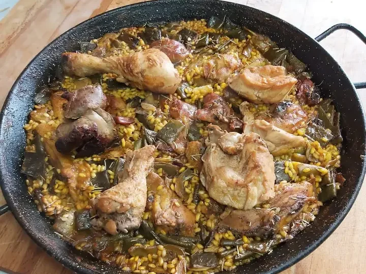 Déjeuner au restaurant avec la traditionnelle paella valencienne (lapin et poulet).